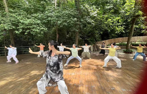 We play music, hiking, Ta chi, swiming etc every month.