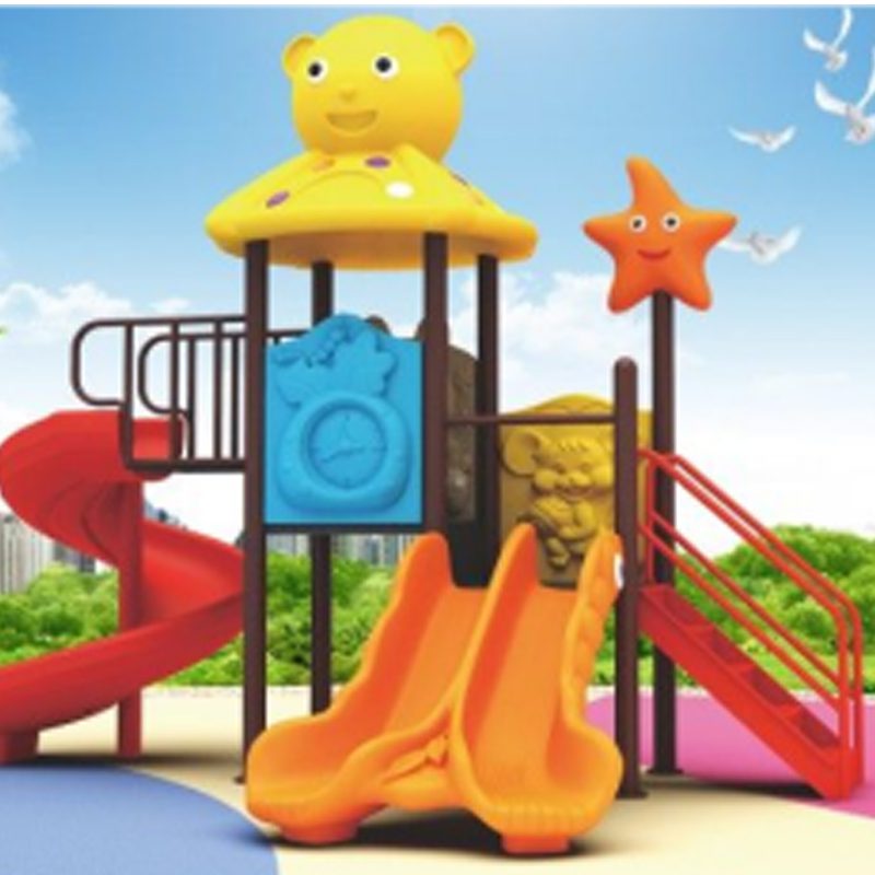 Bear-Themed Outdoor Playground Slide for Kids – Affordable Steel-Plastic Commercial Play Equipment for Amusement Parks