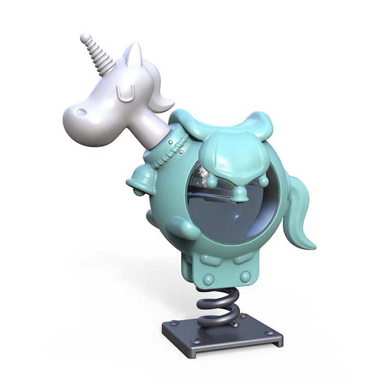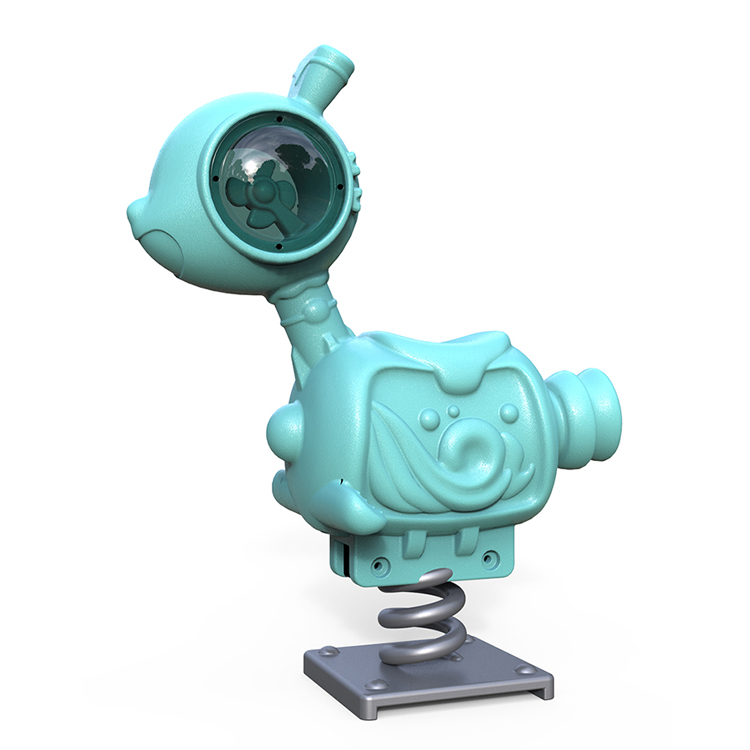 A: Safety is our top priority. The main body is made from high-density, rotomolded polyethylene (PE) plastic, which is impact-resistant and non-toxic. The spring and frame are constructed from heavy-duty, powder-coated steel. All edges are smooth, and the design includes a wide, stable base to prevent tipping. It complies with major international safety standards for commercial playground equipment.