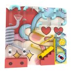 Carefully crafted with a well-structured layout, the panel is divided into distinct interactive sections, each offering unique activities. Small decorative details like rotating gears and musical notes add layers of playful discovery. The use of high-contrast colors—vivid purples, yellows, pinks, and blues—captures children’s attention and supports visual development. Every component is designed to be intuitive, allowing young users to enjoy independent play while fostering imagination and problem-solving abilities.
