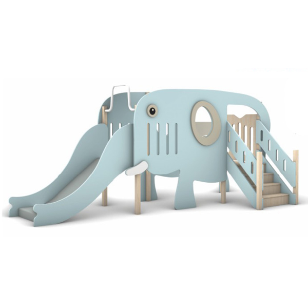Introducing Ellie the Explorer Slide, a perfectly sized first playground that transforms a beloved animal into a child’s most exciting achievement. This charming playset features a friendly, sky-blue elephant with sweet, welcoming eyes and a cheerful expression, all crafted in soft, rounded forms that feel as huggable as they are durable. Its innovative design integrates a sturdy wooden ladder with a soft-blue handrail into Ellie’s sturdy side, leading adventurers to a small, secure platform. From there, the play culminates in the most delightful journey: a smooth, gentle slide down the elephant’s cleverly curled trunk. Every element, from the inviting pastel palette to the low-profile structure, is meticulously designed for safety and approachability, creating an irresistibly cozy and secure first challenge for toddlers.