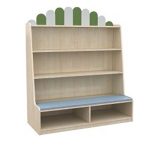 An Arched Kids Cabinet with Integrated Seating a Cartoon Tree Shelf and a Nursery Storage Bench plus a Small Toddler Locker with Blue Panel