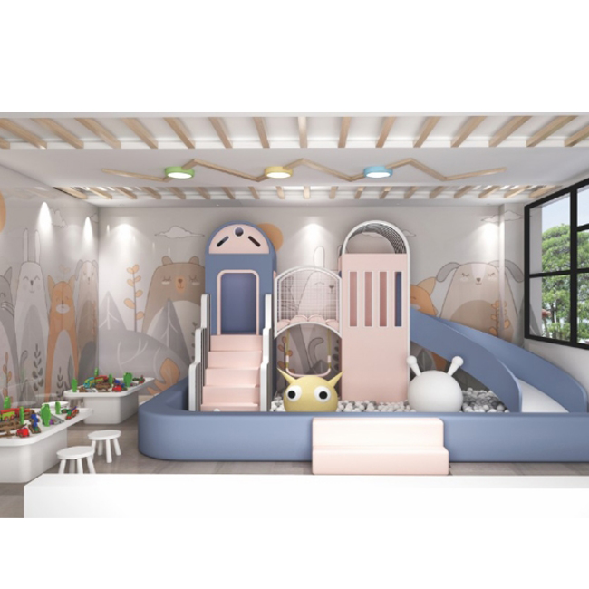 Designed for safety and longevity, every element meets rigorous standards. The structures feature rounded edges and sturdy builds, while the soft play shapes and foam blocks ensure safe, tactile interaction. The layout cleverly defines distinct activity areas—from active climbing and sliding to quiet constructive play—making it both easy to supervise and durable for daily use in commercial settings.