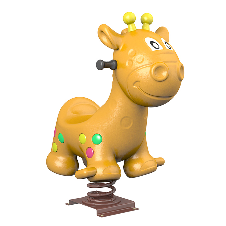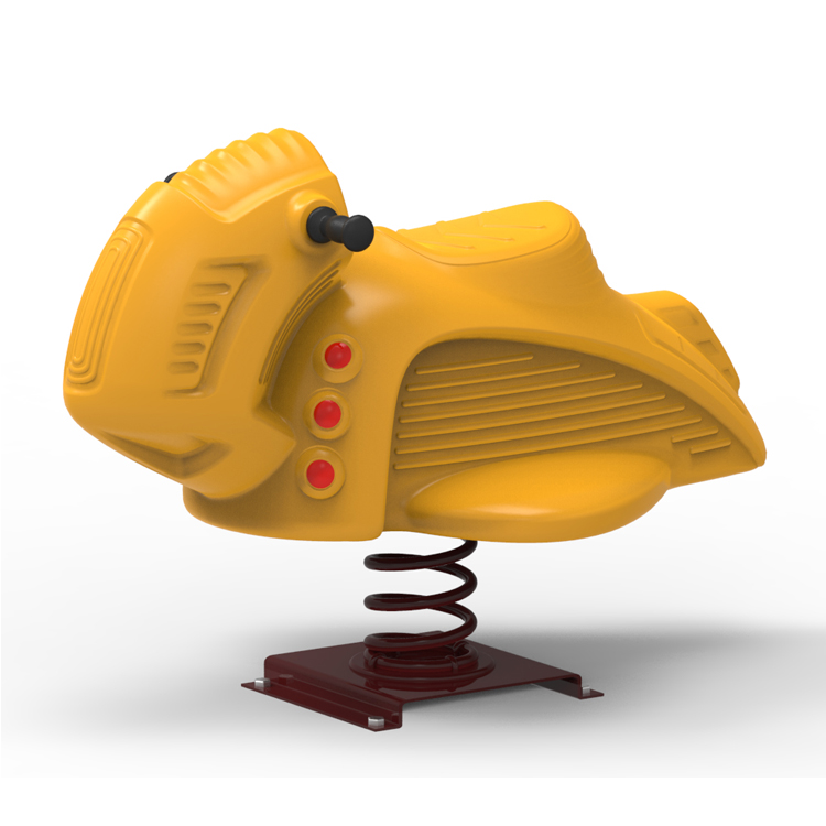 A: Safety is our top priority. The main body is made from high-density, rotomolded polyethylene (PE) plastic, which is impact-resistant and non-toxic. The spring and frame are constructed from heavy-duty, powder-coated steel. All edges are smooth, and the design includes a wide, stable base to prevent tipping. It complies with major international safety standards for commercial playground equipment.