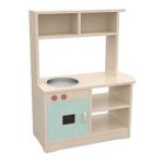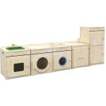 Role-Play Kitchen Cabinet and Kids Home Appliance Toy with Realistic Oven and Sink Wooden Pretend Play Montessori Activity Station