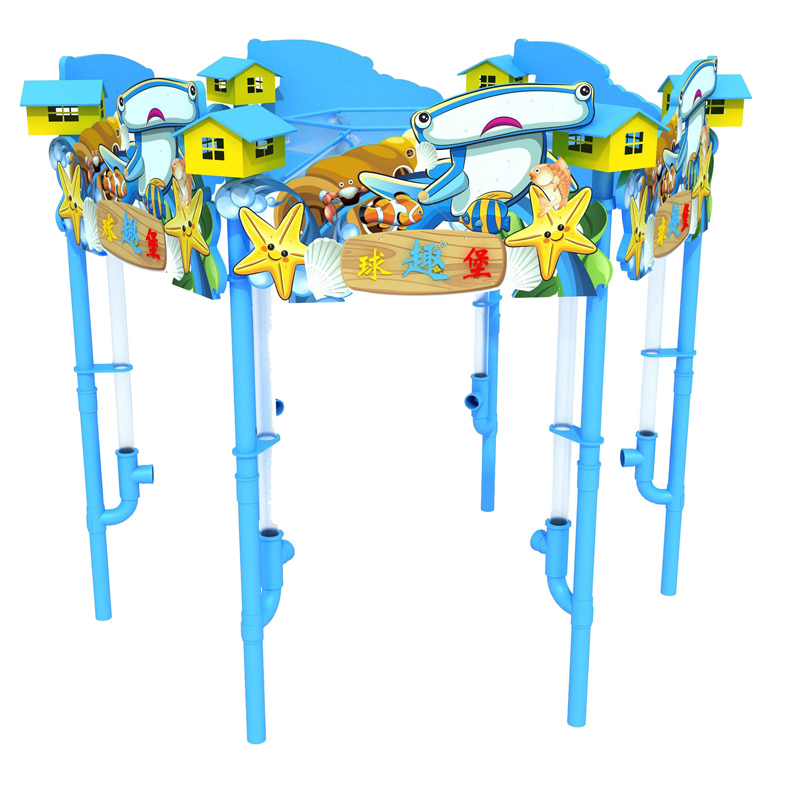 Welcome to a world of whimsy with our Pearl Castle Ball Sprinkler for Playground. This enchanting indoor playground ball sprinkler with house decor features a charming pink-roofed house sitting atop a vibrant, multi-colored hexagonal dome. The playful blue and purple color scheme, supported by sturdy blue pipes, creates a fairytale castle silhouette that instantly sparks imagination. As a delightful colorful ball shower machine for kids play area, it gently rains soft balls, offering a magical and engaging sensory play experience that captivates children and becomes the centerpiece of any play zone.